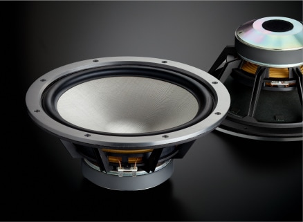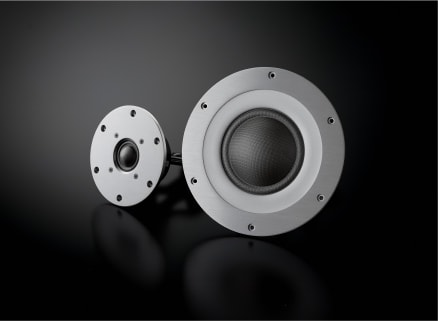 Mounted on the back of the tweeter and midrange speaker units are newly developed R.S. Chambers (patent pending) that suppress unnecessary tube resonance generated behind the diaphragm. Two specially shaped tubes installed in accordance with our proprietary acoustic analysis cancel tube resonance. These R.S. Chambers achieve higher-resolution audio reproduction by eliminating the need for a large quantity of sound-absorbing material inside the enclosure that tends to smooth the frequency response of each speaker unit and might degrade minute nuances of the sound.