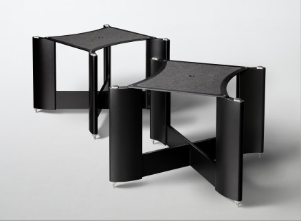 The SPS-5000 is a speaker stand especially designed for the NS-5000. In order to design a stand that solidly supports the NS-5000 without emanating any undesired sound, the four legs are composed of solid aluminium. The legs have smooth curved surfaces and are all installed at an angle of 42° to the baffle surface so as to minimise the effect of the reflection of sound from the speaker. In addition, in order that the height of a seated listener’s ears matches the height of the tweeter of the NS-5000, the stand is set to a height of 304 mm (12”) (including spikes) — higher than that of a normal 30 cm (12”) bookshelf speaker, so that reflections from the floor surface are minimised. The legs are equipped with spikes that can be attached or detached as desired, allowing fine height adjustment.