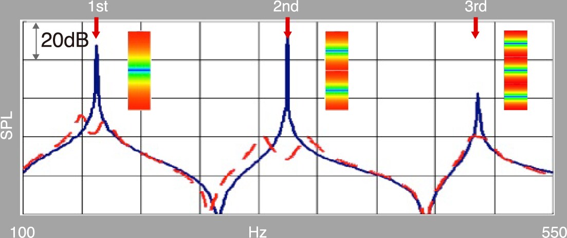 Aided by laser-scanning measurement and state-of-the-art FEM analysis, we developed a unique enclosure structure that effectively controls “box ringing” to a degree undetectable by human ears. Inside the enclosure, we installed proprietary reinforcing bars designed by simulating with pinpoint precision the way sound from the speaker units is transmitted to and emitted from the six surfaces of the enclosure. These reinforcing bars play an important role in perfectly synchronising the timing of acoustic resonances generated by the enclosure, which helps reproduce the natural acoustic vibrancy with amazing purity and clarity — offering a listener with an unprecedented level of immersive audio experience.