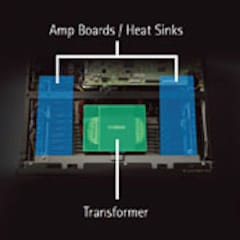 Este é apenas um dos diversos detalhes do projeto que combinados criaram um receiver superior. O interior do aparelho foi planejado com precisão, o endereçamento de circuito e a construção foram feitas para que os canais esquerdo e direito fiquem isolados eletricamente. Isto maximiza naturalmente a separação de canais, e também melhora significativamente a relação sinal/ruído e ajuda a produzir um ambiente sonoro aberto e amplo.