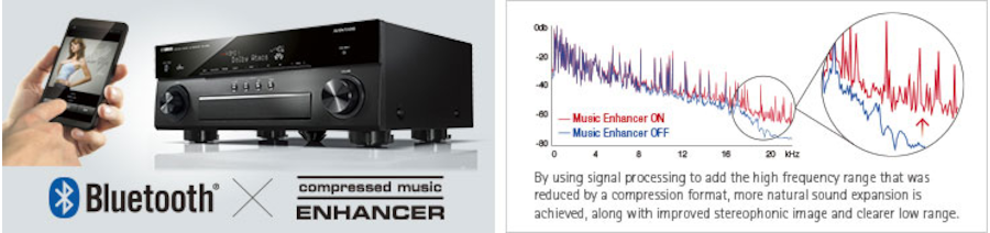 Este receiver Av é equipado com funcionalidade Bluetooth que permite fácil envio de música sem fio através de smartphone e outros dispositivos.O Yamaha Compressed Music Enhancer agora aprimorado para áudio transmitido por Bluetooth para garantir que sua música tenha a qualidadede músicas sem compressão mesmo durante a reprodução sem fio.