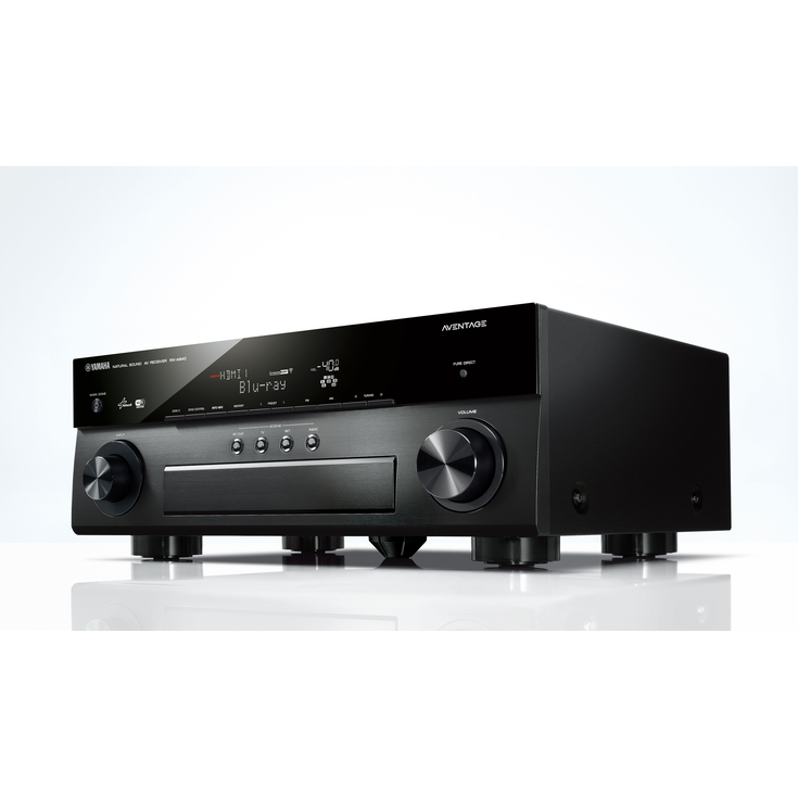 Receiver AV AVENTAGE de 7.2-canais, com Wi-Fi embutido, focado em áudio e vídeo de qualidade superior, Network, com a última versão de HDMI® com suporte para o 4K Ultra HD 50/60p. AirPlay®, YPAO™ Volume, CINEMA DSP 3D, e Tecnologia Anti-Ressonância Wedge inclusa.