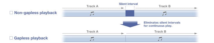 Muitos álbuns clássicos e ao vivo não tem interrupções entre as faixas. A reprodução ininterrupta garante que não haverá pausas entre um arquivo e outro. Isto reproduz as músicas sem interrupções, como elas devem ser ouvidas.