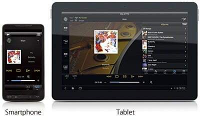 Este receiver permite que você use o aplicativo Yamaha AV Controller App que pode ser baixado para controle de ligar/desligar e volume, seleção de entrada e programa DSP e operação de funções do iPhone® ou dispositivos Android. Você pode customizar a interface ocultando ícones que não são usados e renomeando funções. Uma versão para tablet está disponível.