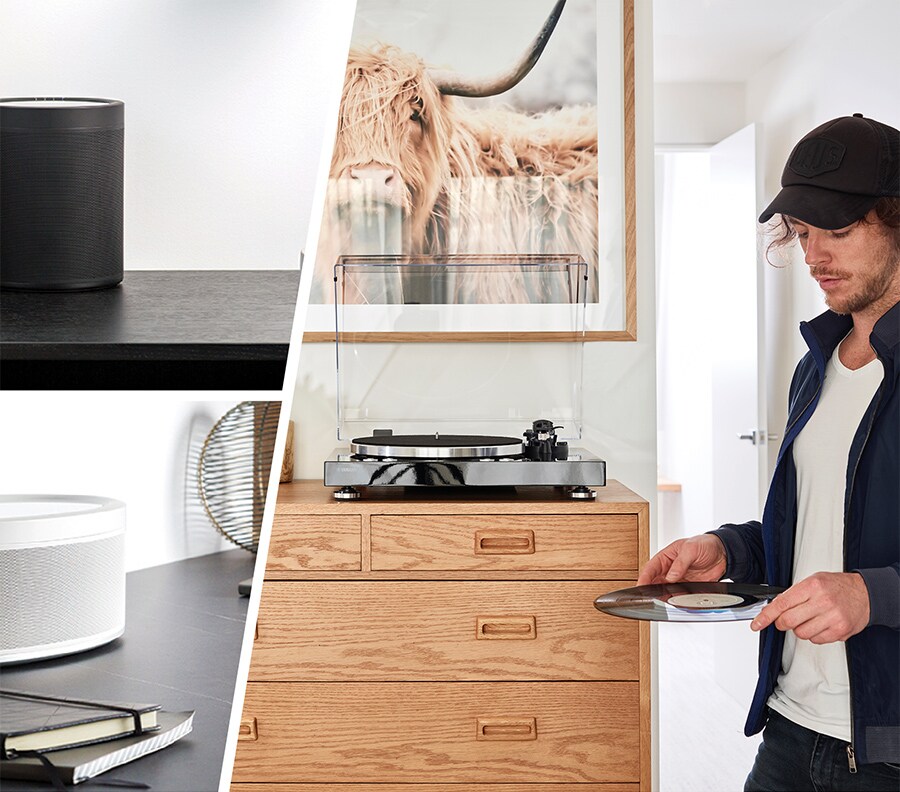 Toque moderno no seu aparelho! Conecte o toca-discos MusicCast VINYL 500 sem fio aos alto-falantes MusicCast e outros aparelhos e curta sua coleção de discos sem cabo nenhum.