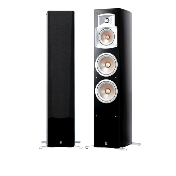 Home Theater SpeakerSistema de alto-falantes de 2 vias em torre Bass-Reflex. A série EF (Elliptical Form) tem cornetas Waveguides, woofers PMD (Polymer-injected Mica Diaphragm) e cabeamento interno da mais alta qualidade, Monster Cable para diversão total com sons de filmes digitais ou músicas, em um gabinete com acabamento elegante de pianos tradicionais Yamaha.