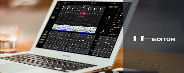 O aplicativo TF Editor para computadores Windows e Mac fornece uma interface completa para edição e configuração off-line de consoles TF, com recursos de gerenciamento de cena e presets, além de adicionar a possibilidade de alternar os nomes dos canais através do teclado de seu PC. Além de poder configurar o console off-line em qualquer local e hora conveniente, o TF Editor pode ser usado on-line ao mesmo tempo que os aplicativos TF StageMix e MonitorMix. Um PC do Windows 8 (em diante) pode usar as mesmas ferramentas que o próprio console. E se estiver usando Wi-Fi, um PC pode funcionar como um dispositivo de mixagem remoto. Até três dispositivos que executam o TF Editor ou StageMix podem ser conectados ao mesmo tempo.