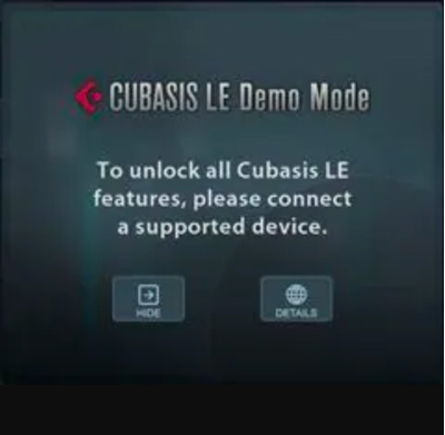 Iniciar o Cubasis LE executa o aplicativo no modo de demonstração. Para desbloquear o conjunto de recursos LE do Cubasis LE, é necessário conectar um dispositivo da série AG ao dispositivo iOS.