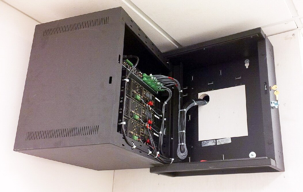 The state-of-the-art Community Room can be separated into three parts, requiring source management and multi-zones for fluid usage and easy management by multiple users. Nearly 50 Yamaha VXC performance ceiling mounted speakers were installed, along with one Yamaha MTX 3 audio processor with DCP4V4S-US wall control, three Yamaha XP7000 amplifiers, and MG10 mixer with Le Diplomate completing the programming for the matrix and multi-connection wall plates.