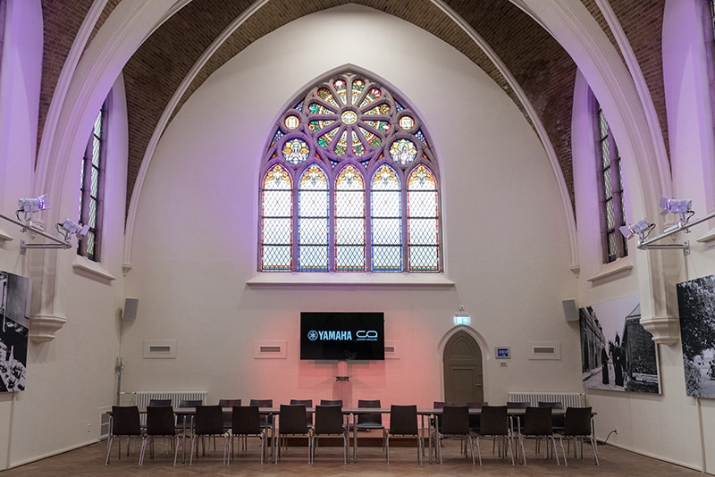 The AV facilities were designed and installed by Dennis van der Vleuten, of Oisterwijk-based Klundert Audiovisual. As is often the case, the technical infrastructure is complex, but its operation needs to be very clear and straightforward. Yamaha audio systems are the ideal solution for these needs, here covering four main areas; the foyer, restaurant, Kerkzaal (Church Room) and Kapittelzaal (Chapter Room).