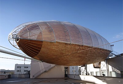 Named Gulliver, after the fictional traveller, the 42m long, 120-capacity steel and wood airship is a permanent space for lectures, exhibitions, screening and other cultural events. It was the idea of DOX founder Leoš Válka and his belief that, even in today’s fast-paced, globalised world, things can be done differently.