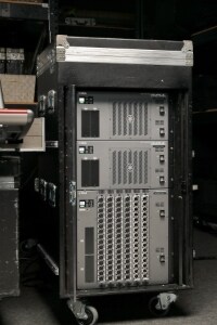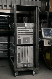 We have one large CS-R10 control surface and one small CS-R10-S control surface, and multiple DSP-R10 DSP engines running Version 2 software that allows DSP mirroring. Our RPio622 I/O Rack provides 64 analog inputs and 32 outputs.