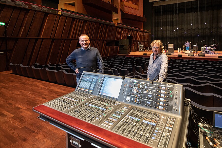 Laurent Watgen (chefe da divisão técnica) e Hagen Tschek (gerente sênior de operações de palco) com o Yamaha RIVAGE PM10