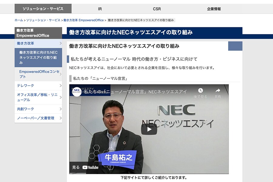 Esforços da NEC Networks & System Integration Corp. para reformar a sua forma de trabalhar