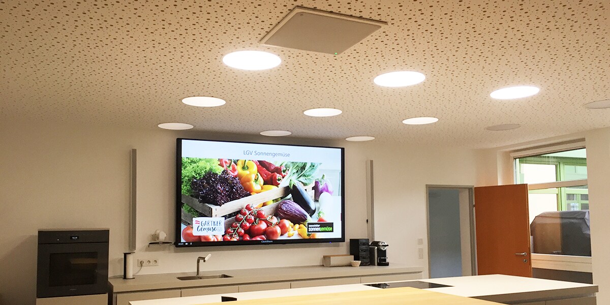 A LGV Sonnengemüse é uma cooperativa de produtores de legumes na Áustria que está empenhada no bom gosto. A associação de 150 jardineiros e agricultores produz os melhores legumes locais em explorações familiares e também dá dicas sobre como prepará-los adequadamente. Na sede da LGV em Simmering, eles quiseram otimizar a qualidade de som para conferências numa sala multifuncional muito especial. Esta sala funciona tanto como um espaço de reunião como pode transformar-se numa cozinha de demonstração para apresentar a preparação de legumes através de videoconferência.