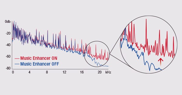 Extensão com altos bits e amostragem alta de até 96 kHz/24-bit podem ser aplicadas para conteúdos de 44.1/48 kHz sem perdas, como um CD (2-canais PCM) ou um arquivo FLAC para aumento futuro da musicalidade no conteúdo original.