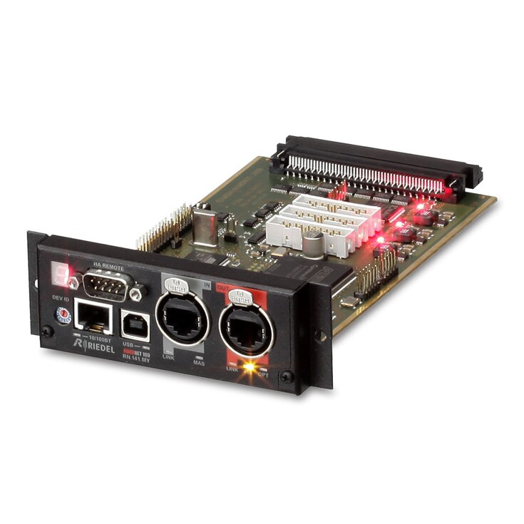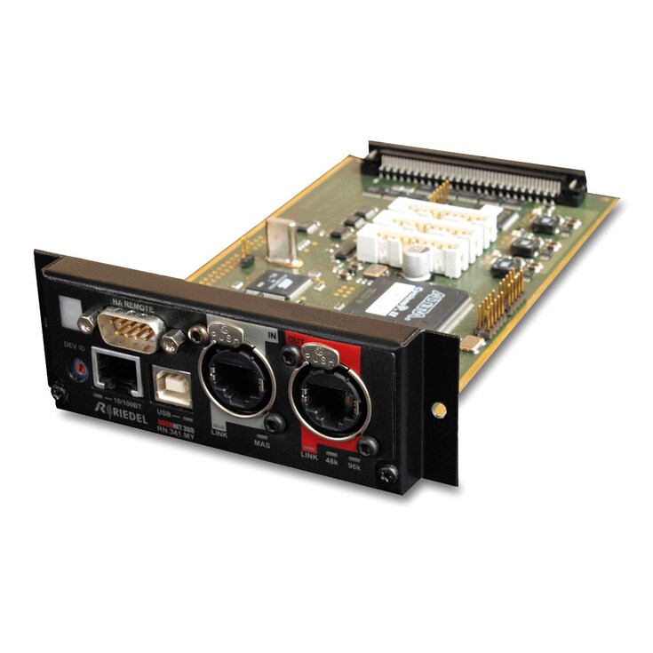 - 2 portas RS422 para transporte direto do protocolo Yamaha HA Remote via Optocore