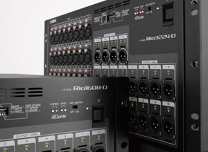 O Rio3224-D de tamanho 5U permite 32 ins, 16 outs, e quatro saídas AES/EBU.