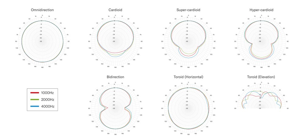 | Latência | 46 ms (exceto para diretividade toroidal), 50 ms (para diretividade toroidal), 20 ms (modo de baixa latência, com exceção da diretividade toroidal), 23 ms (modo de baixa latência para diretividade toroidal) | ||