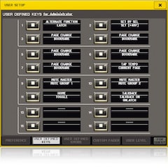 Um grande número de funções do console, incluindo Enviar (Send) no Fader, Tap Tempo e Set by Sel podem ser atribuídas a 16 chaves definidas pelo usuário, com acesso instantâneo.