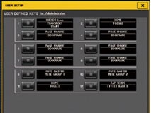 "Teclas Definidas pelo Utilizador"" que podem ser configuradas para corresponder aos parâmetros, outra característica tradicional das mesas de mistura digitais da Yamaha, as mesas de mistura da série QL também possuem ""Botões Definidos pelo Utilizador"", configuráveis no ecrã, para uma variedade de parâmetros. A combinação destas duas funcionalidades de definição pode aumentar consideravelmente a velocidade e eficiência de utilização das mesas de mistura.