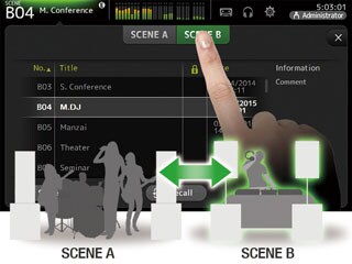 É possível armazenar até 200 cenas divididas em 2 bancos de memória, A e B. Essas cenas podem ser acessadas a qualquer momento, permitindo com que o usuário possua diversas configurações disponíveis para diferentes utilizações do mixer, seja uma palestra seguida de um show, uma peça de teatro com intervenções musicais, etc…