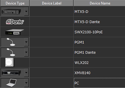 Identificar dispositivos conectados a um switch apenas por seu endereço IP ou MAC é uma abordagem difícil e propensa a erros. Os dispositivos Dante conectados são identificados por um ícone Dante, bem como um ID de dispositivo previamente configurado através do software Dante Controller. Você também pode inserir informações adicionais, como a localização do dispositivo, nos campos Etiqueta e Comentário.