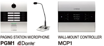 A "série SWR2100P" que são simples comutadores L2 pode fornecer energia, bem como sinais de áudio e controle para um dispositivo Dante compatível com PoE, como o microfone da estação de paginação "PGM1" através de apenas um cabo Ethernet. Como a fonte de alimentação e a fiação de rede pode ser combinado, o número de cabos que estão sendo usados pode ser reduzido e a distância de conexão pode ser estendida, de modo que o grau de liberdade da instalação do dispositivo Dante é aumentado e a flexibilidade da construção ainda melhorada.