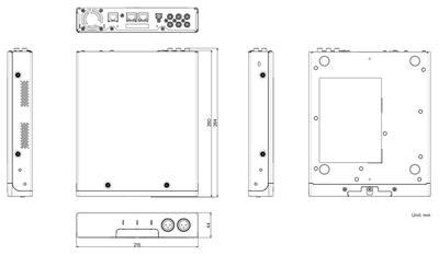 | Acessórios | Manual de instalação, Cabo USB (A-B) 5 m (16,4 pés), Cabo USB (A-microB) 1 m (3,3 pés), 4x Pé de borracha, Painel de acesso | ||