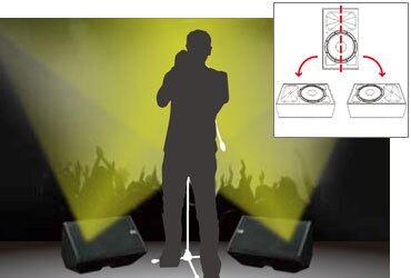 O design do gabinete dos modelos DXR15mkII e DXR12mkII permite o posicionamento do retorno de palco em modo espelho, criando um campo de som simétrico para o artista com um “ponto ideal” maior e mais definido. Tanto na configuração dual-mono equilibrada ou em estéreo, o modo espelho melhora consideravelmente o retorno e a música no palco.