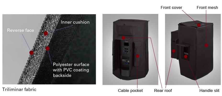 A capa funcional protege sua caixa acústica contra o mau tempo nas apresentações ao ar livre, depósito empoeirado/sujo ou durante o transporte na estrada.