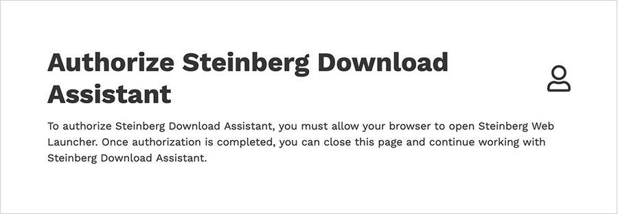 Você verá uma tela de autenticação pedindo permissão para abrir o Assistente de Download da Steinberg no seu navegador. Depois de aprovar esta solicitação, você poderá usar o Assistente de Download da Steinberg.