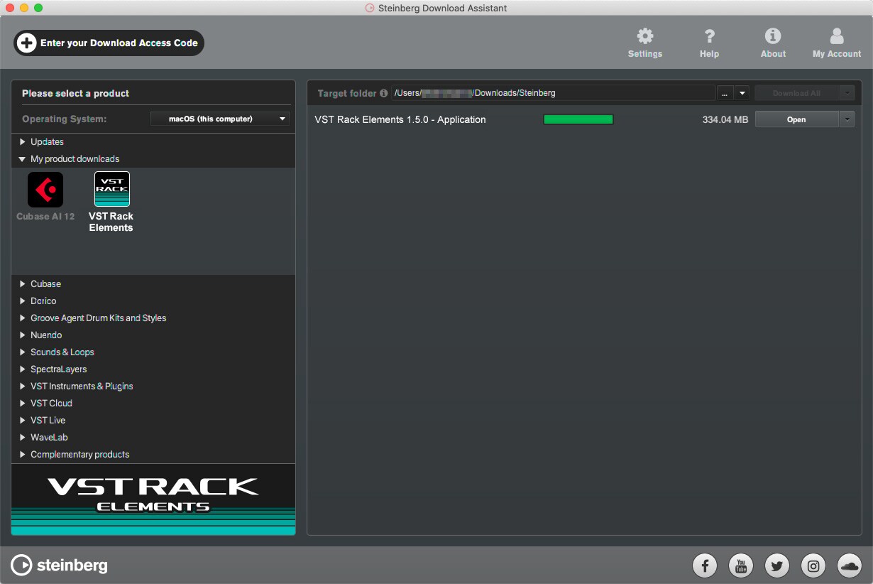 Digite seu código de acesso de download no botão no canto superior esquerdo do Assistente de Download da Steinberg.