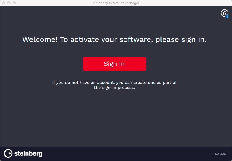 Uma vez terminado o download e a instalação, abra o software, clique no botão "Entrar" para ativar a licença no Gerenciador de Ativação Steinberg, e clique no botão "Ativar".
