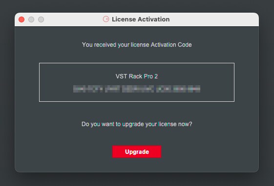 Depois de inserir o código, você receberá o código de ativação da licença do VST Rack Pro 2.