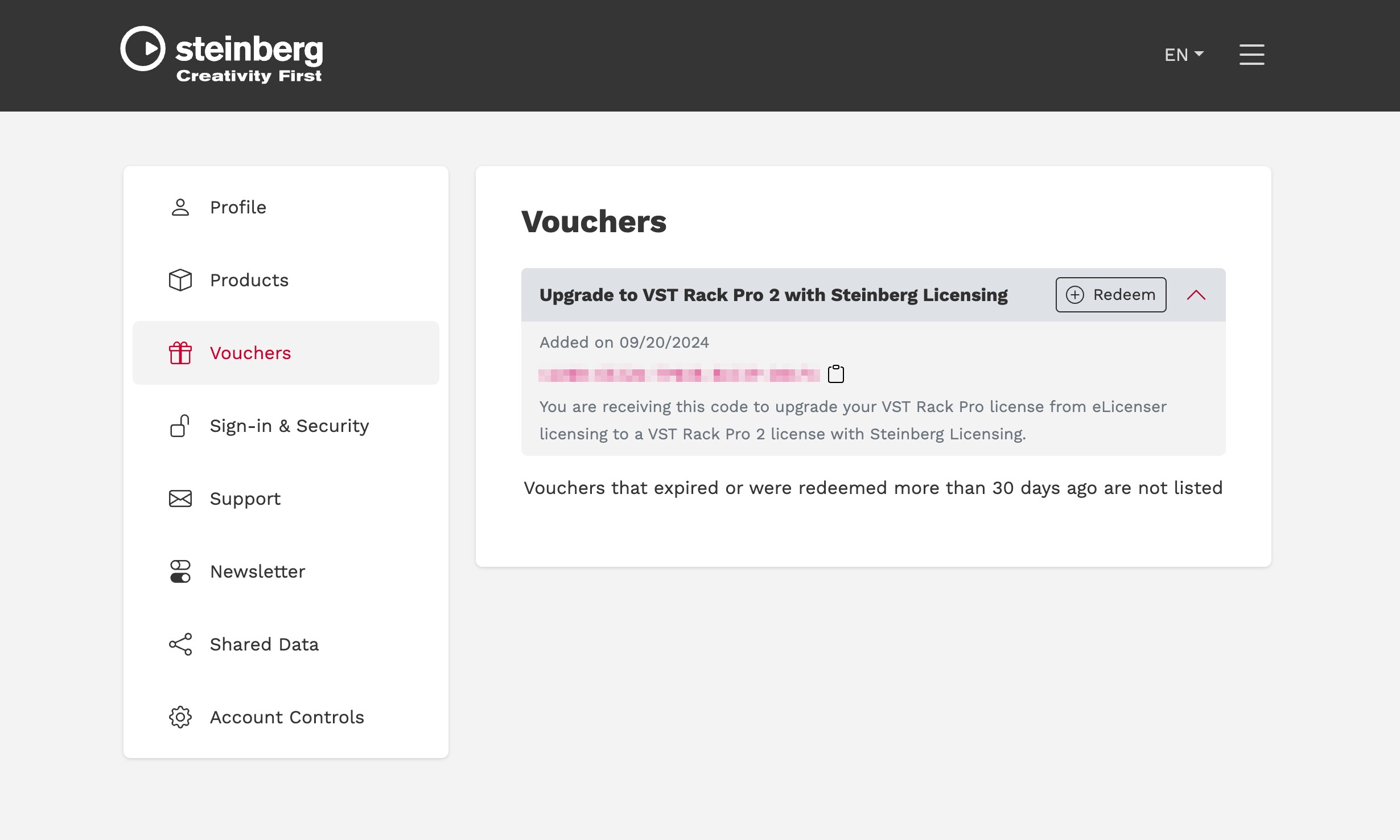 4. Resgate a licença de atualização no MySteinberg.