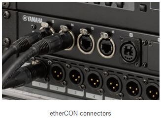 As for the connectors, in addition to the usual RJ45, many devices are also compatible with the rugged etherCON connector. etherCON connectors use a locking mechanism which makes it difficult for the cable to be pulled out, and are useful for applications where the cable needs to be both pulled in and out frequently but also firmly locked in place, such as during live performance.