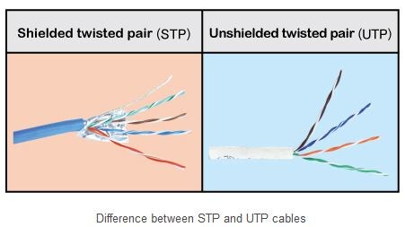 To prevent electromagnetic interference, use STP (shielded twisted pair) cables. Unlike ordinary UTP cables, STP cables have shielding that reduces the radiation of noise. Because STP cables have to be grounded, it’s also necessary to use connectors that are compatible with STP cables.