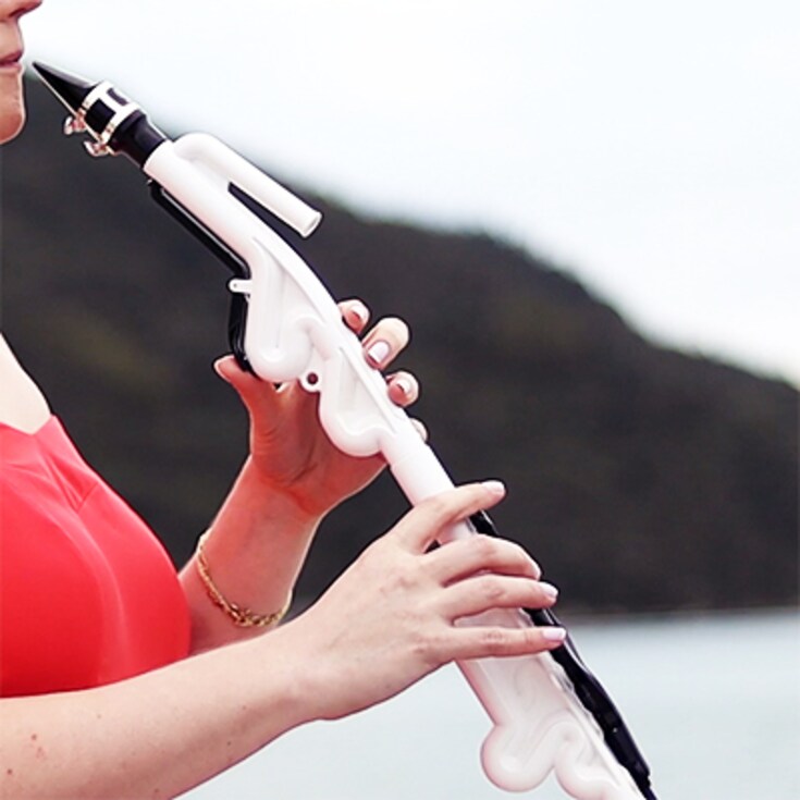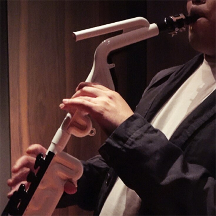 Inovação e criatividade não acontecem por acaso. Sem entrar nos detalhes técnicos, o formato especial deste instrumento, que reproduz o som do saxofone, mas com um corpo bem menor, é resultado de vários anos de pesquisa.