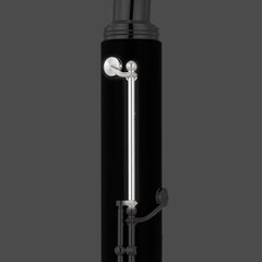 A cavilha fixa-se ao instrumento em ângulo, tornando mais fácil apoiar o clarinete apenas com a cavilha e o polegar da mão direita.