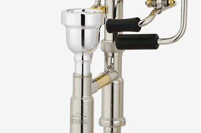 O primeiro apoio de mão removível já fornecido em um trombone baixo personalizado reduz significativamente a tensão nos dedos da mão do músico. Isso permite segurar o instrumento com mais firmeza, para que o músico possa se concentrar mais na música.