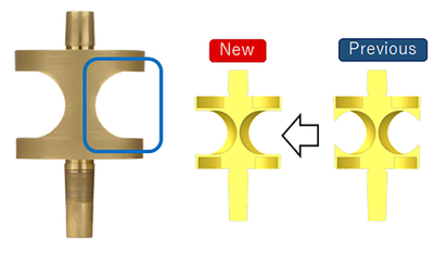 O formato da porta da válvula rotativa foi alterado para aumentar o volume do tubo da válvula, permitindo maior fluxo de ar para um som mais potente.