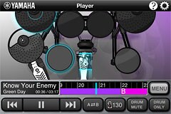 O Song Beats é um aplicativo para iPhone que melhora sua performance na bateria: ele mostra quais tambores tocar, e quando. E já vem com 10 músicas! O aplicativo também cria facilmente acompanhamentos personalizados para bateria, colocando seu instrumento no centro da banda. Além disso, ele também toca qualquer música MIDI adquirida no Yamaha MusicSoft usando o Compartilhamento de Arquivos do iTunes.