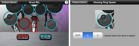 Círculos brilhantes tornam mais fácil ver que peças e quando bater, para que possa aprender a tocar enquanto acompanha as suas canções favoritas. Toque no tambor correspondente quando o círculo brilhante atingir o limiar da peça.