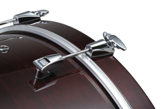 A base leve e pequena do tom holder, permite que o bumbo vibre de forma livre.