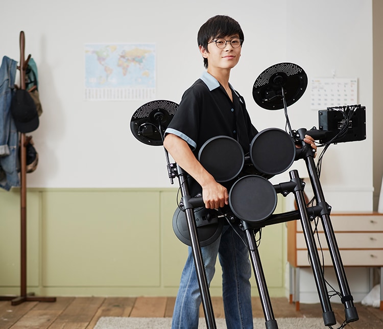 A Yamaha sabe tudo e mais um pouco sobre bateria. Foi assim que conseguimos produzir um design compacto sem comprometer a essência do instrumento. Você pode ajustar a posição e os ângulos dos pratos, caixa e toms conforme desejar, e tocar bateria com a postura correta. A DTX é equipada com o pedal Yamaha, um dos favoritos entre os bateristas profissionais, e reproduz fielmente várias técnicas utilizadas na bateria, como o "choke" e o rim shot. As alturas dos componentes também podem ser modificadas para serem utilizadas facilmente por qualquer pessoa, inclusive crianças pequenas.