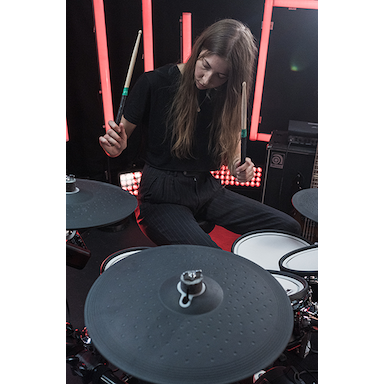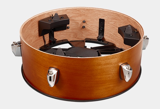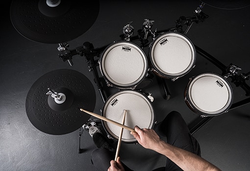 Os mesh pads têm pele Remo com duas camadas. Eles oferecem uma excelente redução de ruídos, além da durabilidade e da sensação ao serem tocados, sem falar na ótima resposta, sendo incrivelmente confortáveis. As peles podem ser ajustadas de acordo com sua preferência pessoal. O pad da caixa vem com três sensores que respondem precisamente à ação delicada das baquetas.