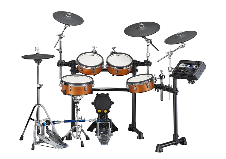 As peles TCS (Textured Cellular Silicone) da Yamaha tem uma estrutura interna exclusiva que fornece uma resposta realista, com firmeza realista, bem como uma superfície tratada pora evitar que as baquetas escorreguem. O resultado é uma sensação natural de bateria que faz você querer continuar tocando.
