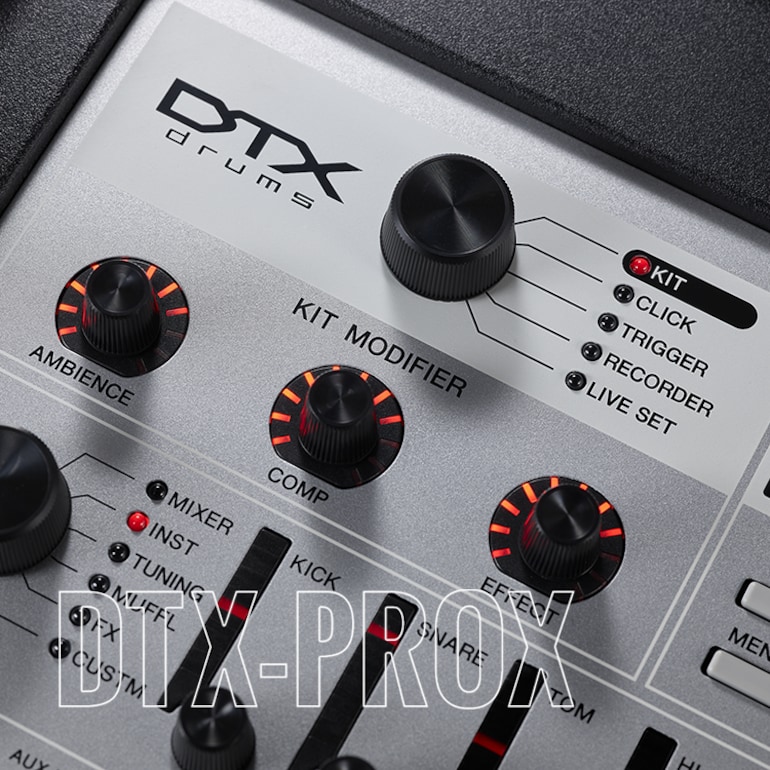 Com o novo módulo top de linha DTX-PROX, qualquer baterista personaliza sons de qualidade e de forma intuitiva. Com sons de bateria com amostragem real e ambiência de sala real, amostrados em estúdios de renome mundial, botões KIT MODIFIER que possibilitam alterar os sons de forma fácil e dramática com um simples giro e faders rotativos de LED que permitem alterar intuitivamente todas as configurações, o DTX-PROX dá forma à sua criatividade interior na bateria.