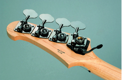 A tarraxa Hipshot baixa o tom da corda “Mi” para “Ré” com o movimento de uma alavanca. Um ajuste de mecanismo proporciona afinação precisa.